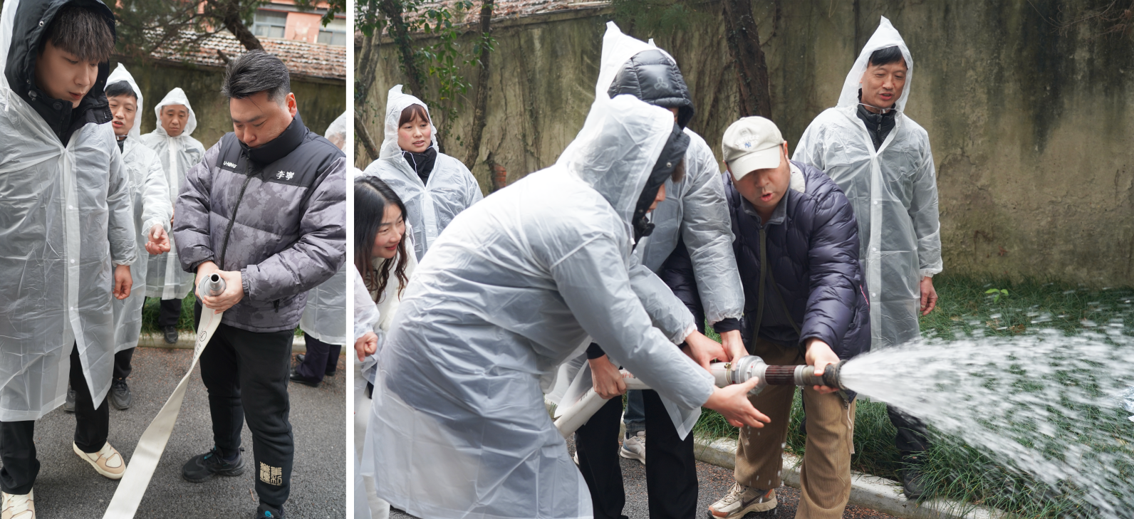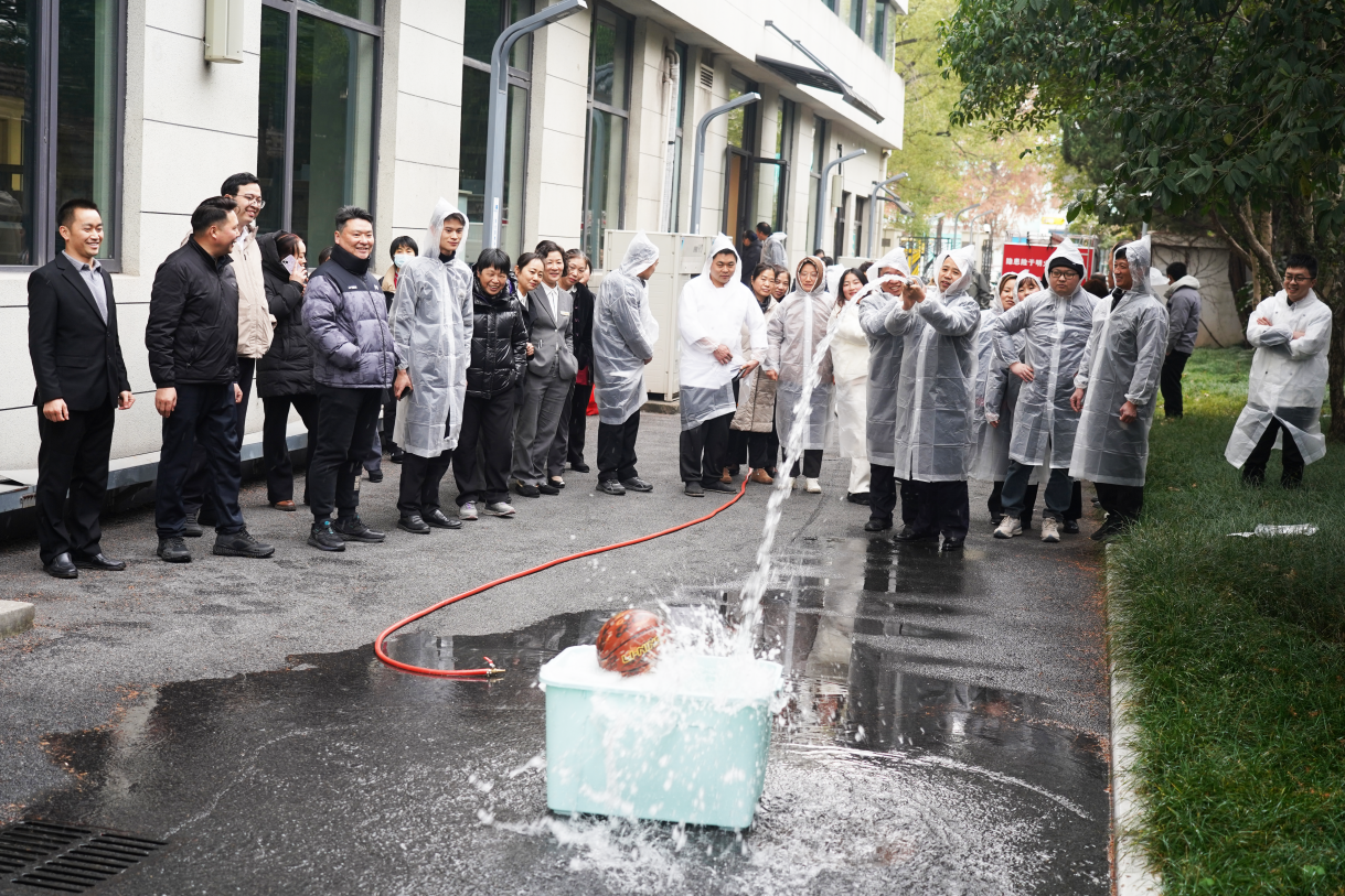 员工们在培训人员的专业指导下,完成了“接水管-铺水带-开阀门-打靶射水”的全流程演练。