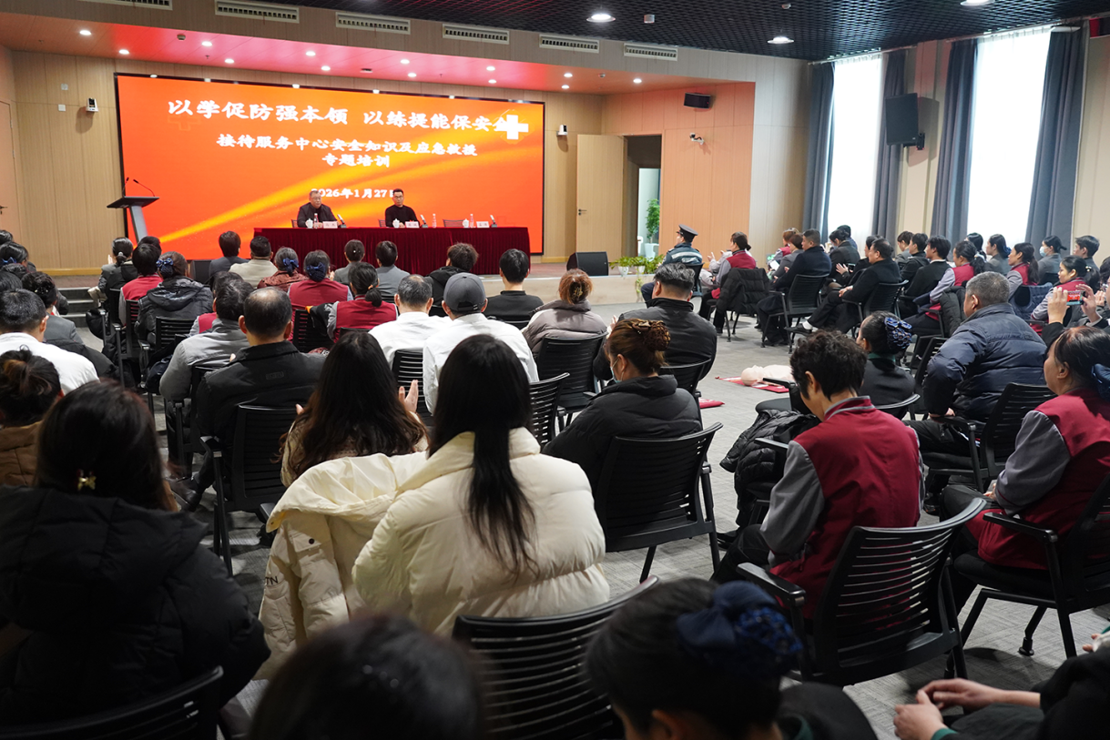为进一步提高员工消防安全意识及应急处置能力,筑牢校园安全防线,1月27日下午,接待服务中心联合校医院、保卫处在国交中心世承讲堂开展全体员工应急救援与消防设备操作的理论加实操演练。接待服务中心主任倪力红、保卫处副处长李雯、校医院副院长孟涛出席。
